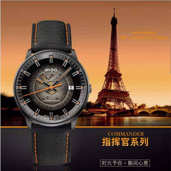 美度指挥官系列自动机械男表渐变半透款