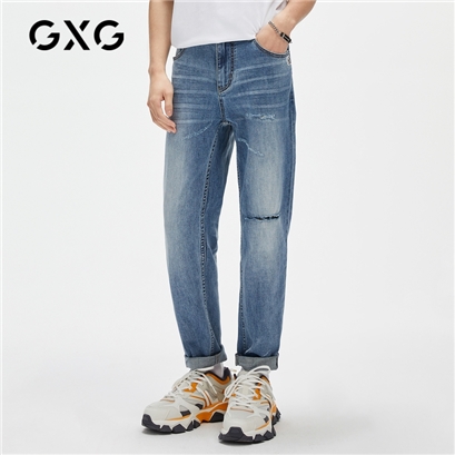 >>GXG服饰VQ联名21年夏季商场同款潮流破洞休闲牛仔裤