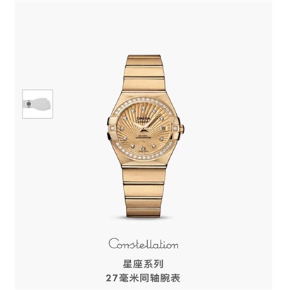 欧米茄星座27MM同轴机械金表女款